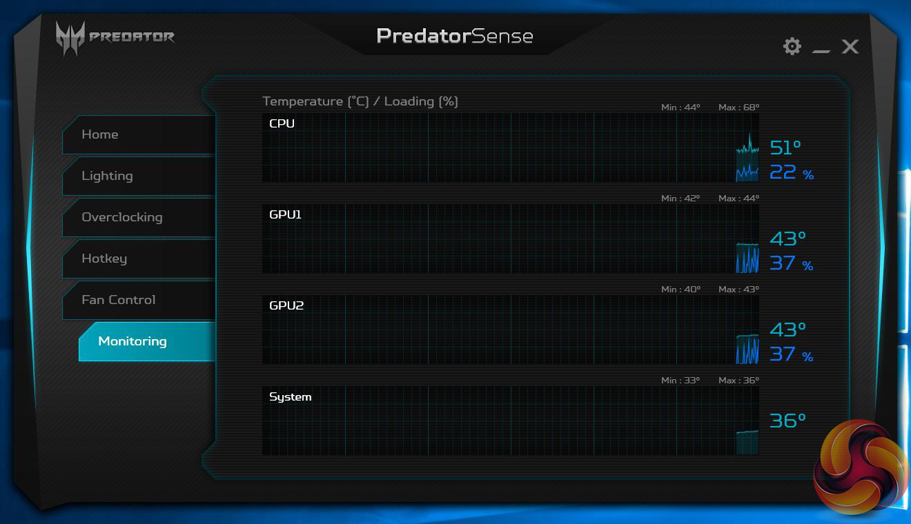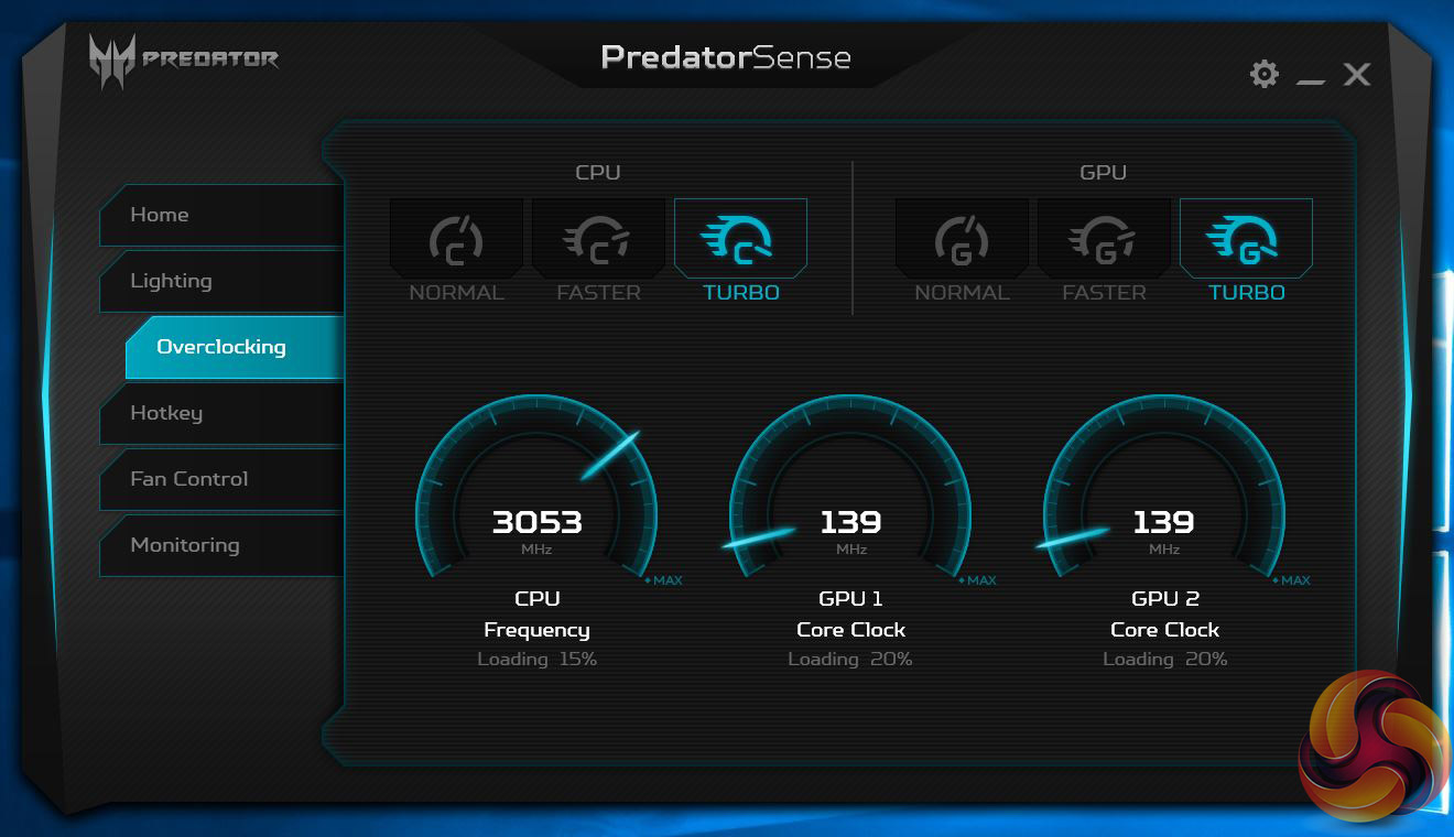 - PredatorSense software controls lighting, fans and overclocking.