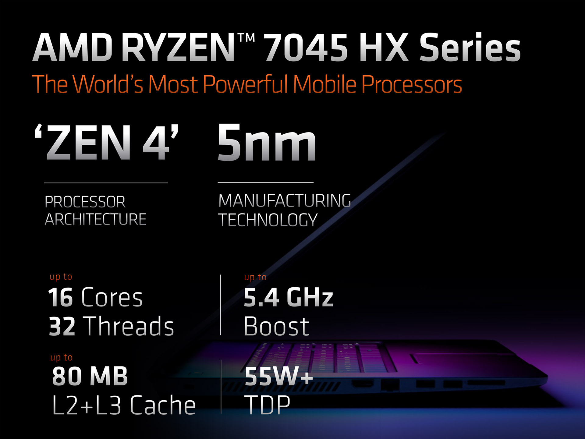 AMD announced their 7045 HX Series of Mobile Processors at CES 2023 and the specification sounded almost too good to be true. The top-of-the-line Ryzen 9 7945HX promised 16 cores, 32 threads, heaps of cache and up to 5.4GHz Boost speed. That sounds like a regular Ryzen 9 7950X with a TDP of a mere 55W which is surely impossible and something we have to see for ourselves.