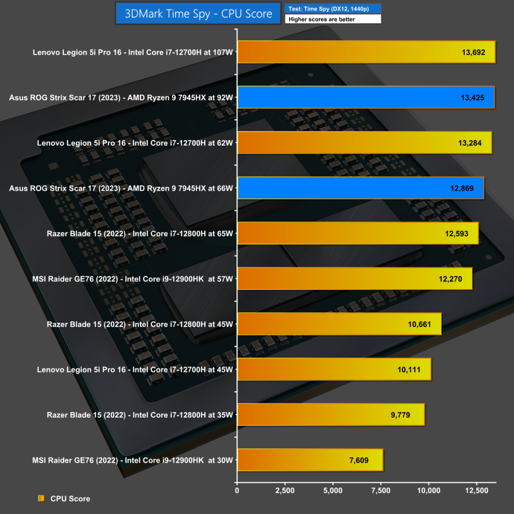The CPU element of 3D Mark Time Spy throws up different results to Cinebench and Blender and while AMD does well it has not excelled.