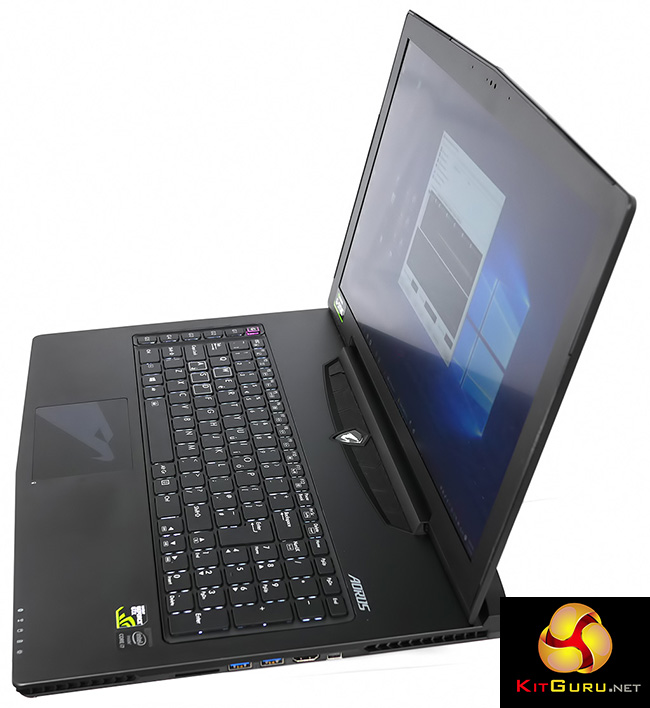 This is a physically large laptop with a 17.3-inch G-Sync screen and Full HD 1920×1080 resolution, however the thin chassis reduces the impression of size. Nonetheless the X7 Pro-Sync weighs a solid 3.3kg (Aorus claims 3kg, presumably without battery) and the power brick adds another 1.1kg so we're not looking at an especially light laptop.