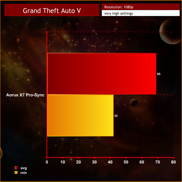 The Aorus X7 Pro-Sync stormed through our benchmark tests, although we would expect little else from a laptop that is powered by a Core i7 and pair of GTX 970M graphics chips. Everything about the laptop was impressive, and it even looked good in Grand Theft Auto V where the minimum frame rate figure on some laptops can dip alarmingly low. Not with X7 Pro-Sync.
