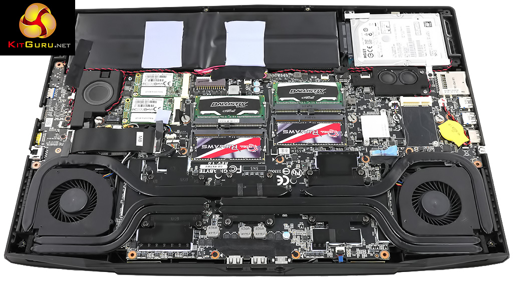 That slender chassis houses an Intel Intel Core i7-5850HQ (Broadwell you will note, rather than Skylake), 16GB of DDR3, dual GTX 970M in SLI, a pair of 256GB SSD in RAID 0 and a 1TB hard drive.