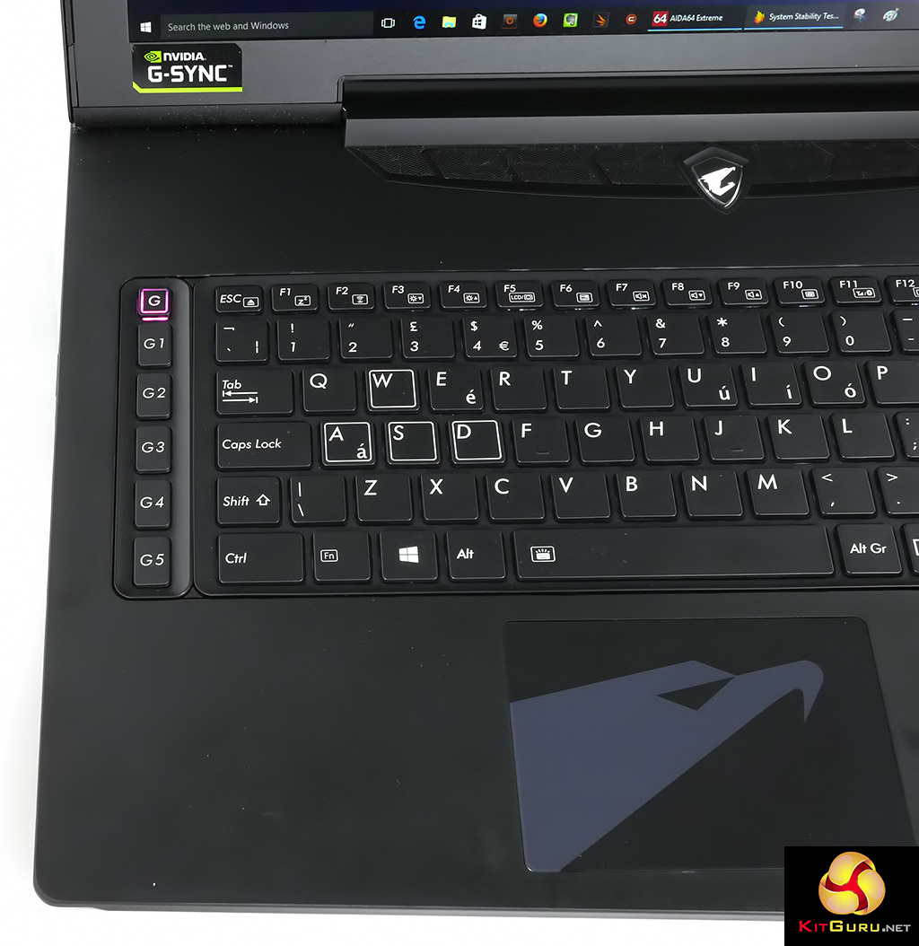 On the plus side Aorus has added a handful of features to improve the user experience such as Nvidia G-Sync, a backlit keyboard with anti-ghost to reduce errors when you are gaming and an Aorus programmable Macro Hub that works with the keys on the left side of the keyboard.