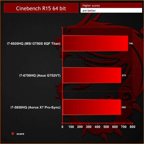 It was interesting to compare the Aorus with the Asus G752VT which uses a Core i7-6700HQ as the CPU performance in both laptops is very similar.
