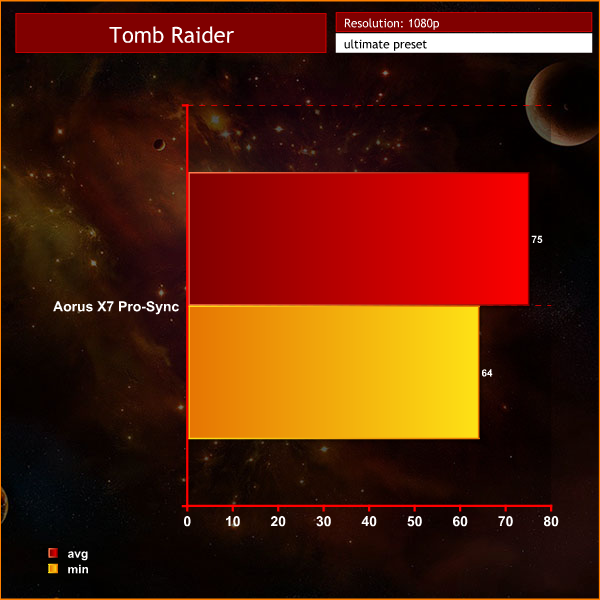Aorus X7 Pro-Sync is very good indeed and allows you to crank up your image quality settings to the maximum with Full HD resolution. On past experience, if you connect a 4K display to either the HDMI or Mini DisplayPort output you will have to reduce quality settings from Very High to High to keep the frames chugging along nicely.