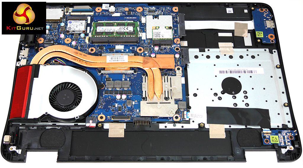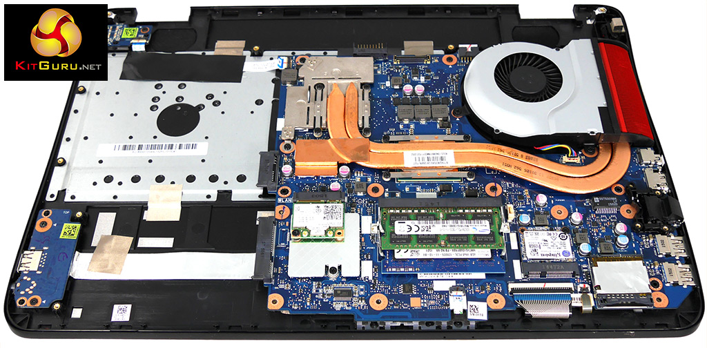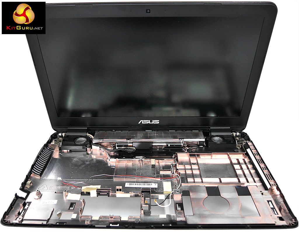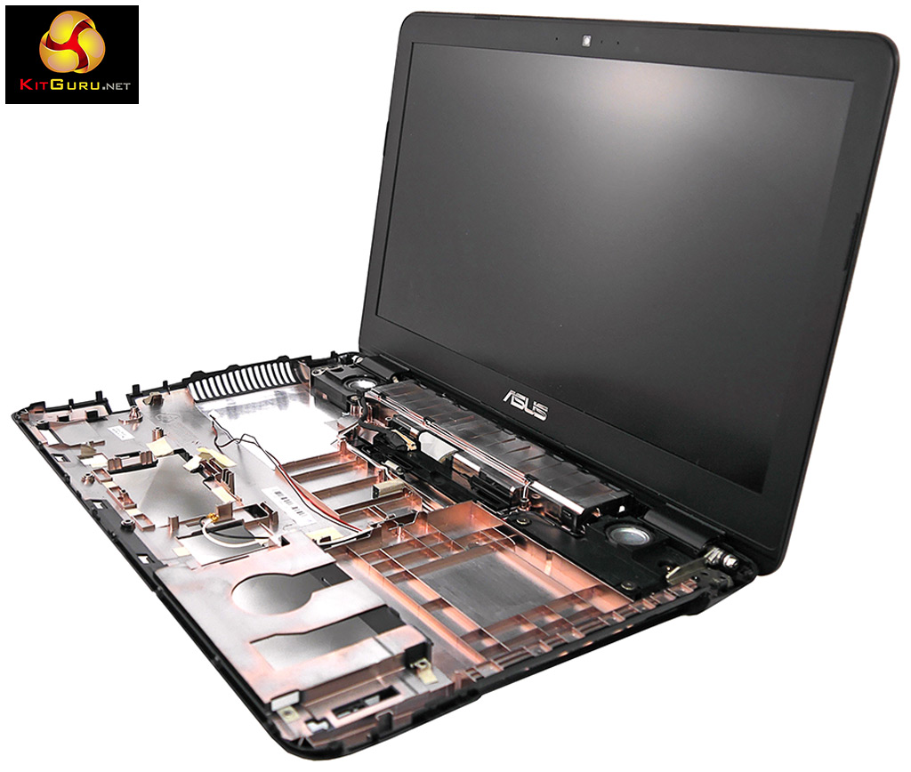 It was an interesting experience to pull the G551J apart for the photos as the construction is quite novel. Once you've removed the optical drive, 2.5-inch HDD and battery then pulled a handful of screws, the keyboard lifts out of the chassis. The intriguing thing is that the keyboard comes away complete with the motherboard, graphics, RAM, SSD, Wi-Fi card and cooling hardware. On the face of it this laptop would be a doddle to configure at the factory before it is assembled and shipped.