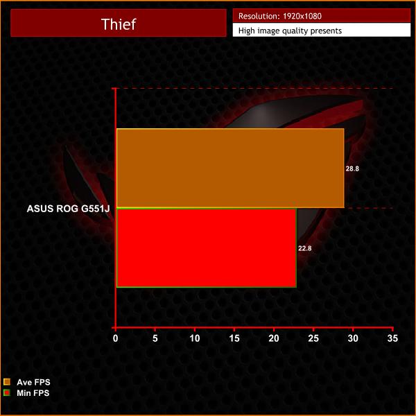 During our testing the G551J performed exactly as expected. The combination of Core i7, GTX 960M and Full HD screen are mainstream and well understood and we found that Thief played at High presets just below 30fps while Tomb Raider was close to 60fps. This is very much a gaming laptop, however it isn't an out-and-out powerhouse that can handle any graphics settings you care to use as that would require a GTX 970M or 980M. The chassis and cooling have clearly been designed to accommodate a GTX 960M without any fancy hardware, whilst keeping the price down to a sensible level..