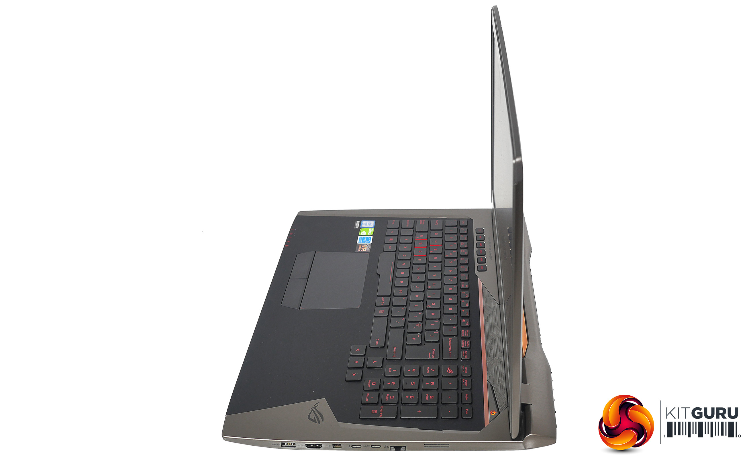 When Asus sent us the specification of the new ROG G701VI laptop we had a couple of thoughts. The first was a point of trivia as the model code suffix looks like VI or Roman 6 i.e. Skylake but in fact it is Vee Eye. The second, much bigger, point is that the specification looks amazing. Asus promises ‘Desktop Performance In A Slim Package’ and they make a good point. This large 17.3-inch chassis is relatively slender and measures 32.5mm at the thinnest point and 35mm at the thicker parts, weighing in at 3.8kg. For comparison the Asus G752VT is 43mm thick and weighs 4.4kg so the Asus ROG G701VI is not significantly smaller or lighter but it looks thinner and has a svelte appearance.