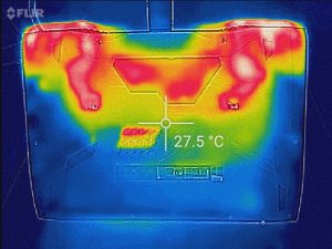 Temperatures are a little on the hot side. The CPU and GPU idle around the 40 degree mark and head north under load. We saw the CPU hit 95 degrees under synthetic stress test load and the GPU ran at 85 degrees.