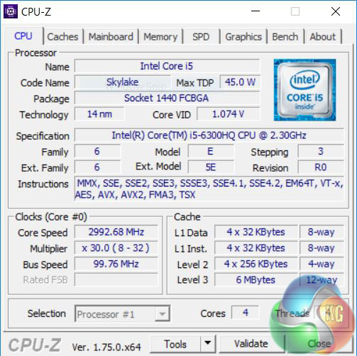 Processor Intel Core i5-6300HQ quad core 2.3GHz/3.2GHz