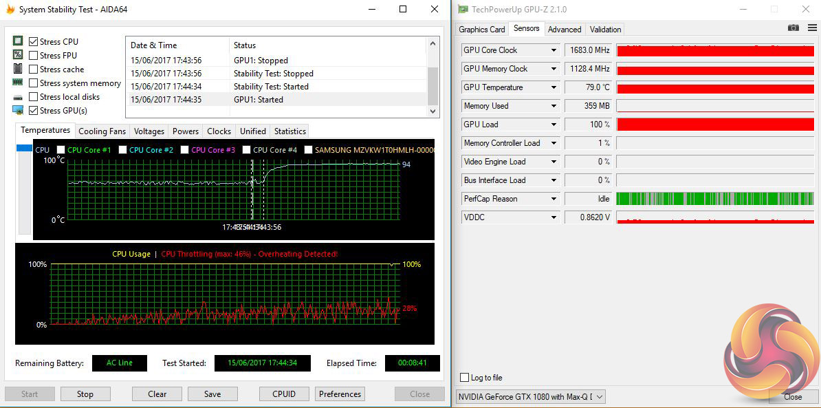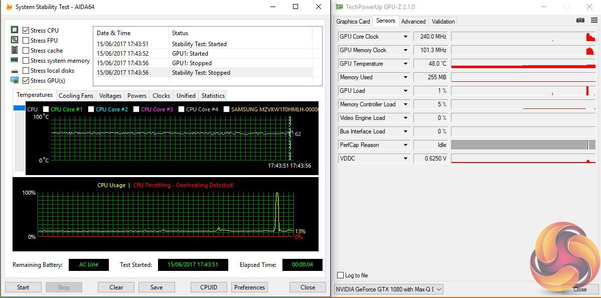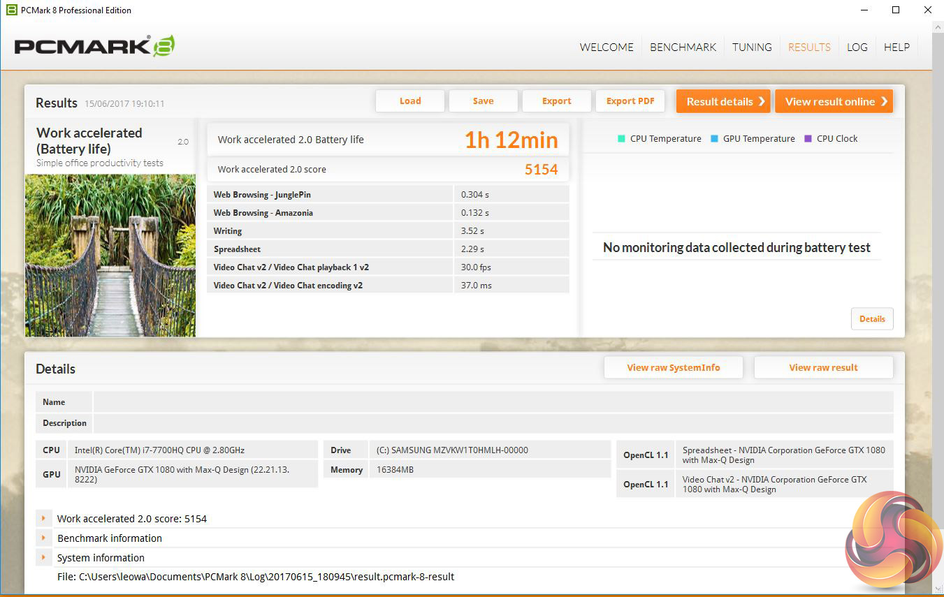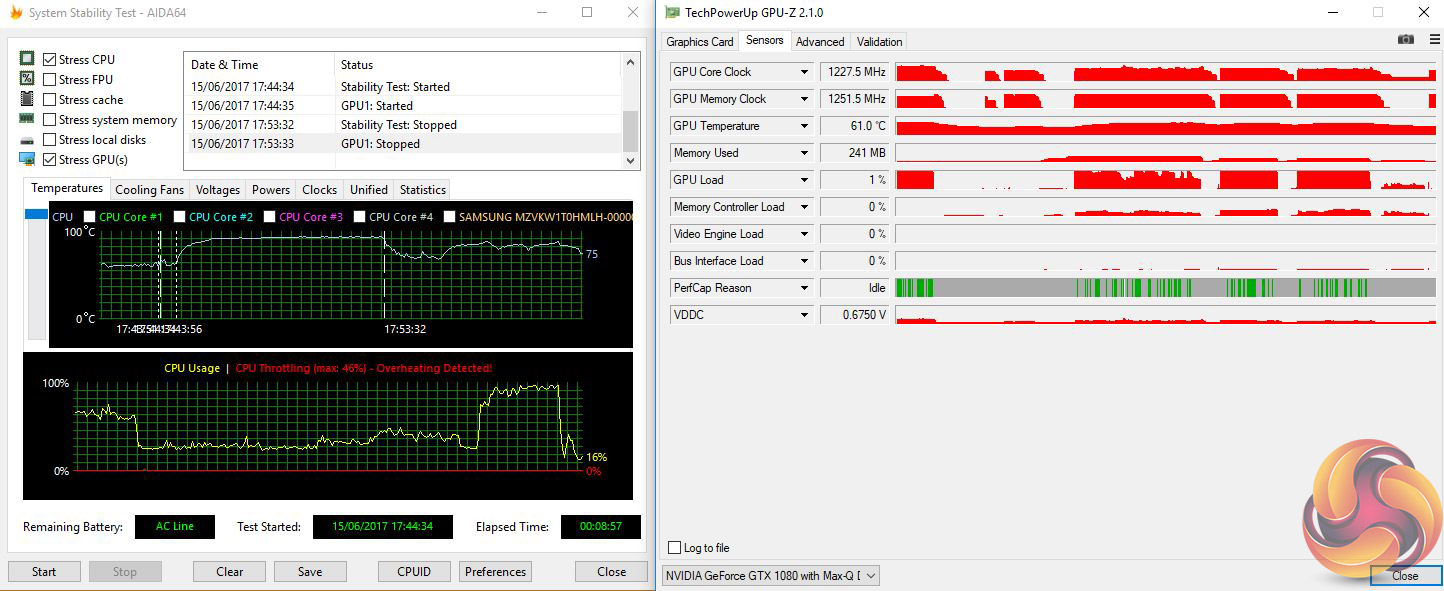 At first glance those figures might look peculiar but when you consider this is a thin and light gaming laptop it all makes perfect sense. In an ideal world we prefer the CPU and GPU to run nice and cool but the critical point is they need to avoid throttling and in regular use this laptop manages that perfectly well.