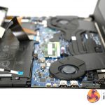 Balanced against that the laptop chassis has been designed around the cooling system which is located in the rear half. This forces the keyboard to the front and the touchpad to the side in a configuration we find aggravating. To add to our woes the keyboard has very short travel keys and the battery is absolutely tiny. It only seems fair to comment that the selection of ports and connectors is very good and the Intel Wi-Fi is absolutely fabulous.