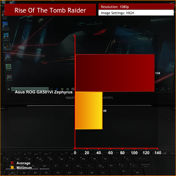 Clearly it helps that Asus has specified a screen that is 1,920×1,080 as we are confident that more pixels might give the Max-Q GPU a hard time. It also helps that the panel is a high quality IPS panel with 120Hz refresh rate as it looks great and means you can leave Sync turned on at all times. We doubt you will find many modern games that want to play faster than 120fps although we noted Rise of Tomb Raider hustled along at 134fps with IQ set to High.