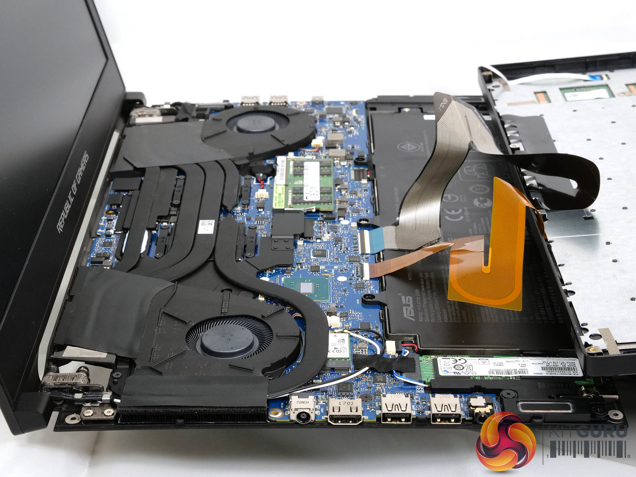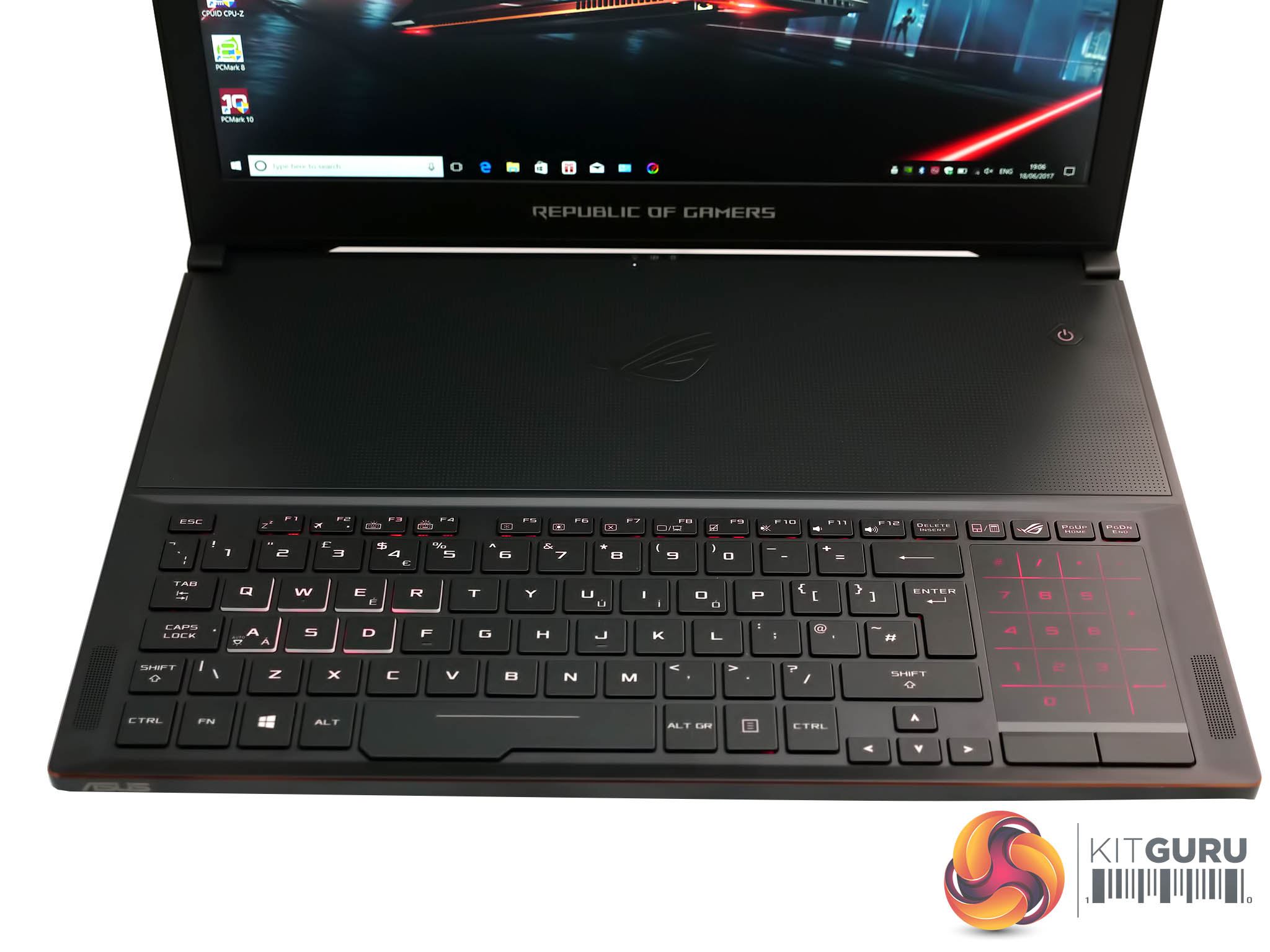 You get a better idea about the way the cooling works when you open the lid of the laptop as the floor of the laptop lowers by 6mm to open an airflow path that directly feeds cooling air to the two fans. It is a novel approach that shows Asus is taking cooling incredibly seriously. Nonetheless we cannot help but wonder would happen with this laptop if you carelessly rested it on soft furnishings or, heaven forfend, put it down on a wet surface.