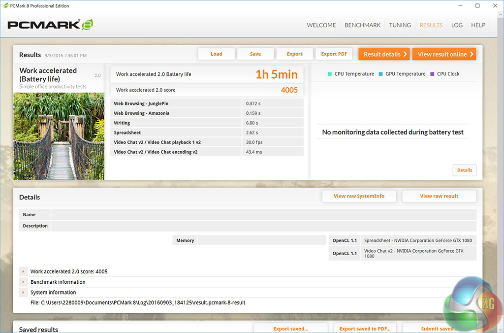 Plug in the power and the laptop runs in Optimized mode with the CPU perking up to 3.6GHz, the RAM remains at 2,400MHz and the GPUs stretch their legs to 1,190MHz with GDDR5X at 7,000MHz.