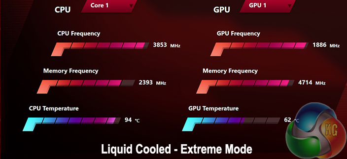 The fourth and final mode is Manual where you use the Gaming Centre software to overclock the Extreme figures with liquid cooling engaged and up to 660W on tap.