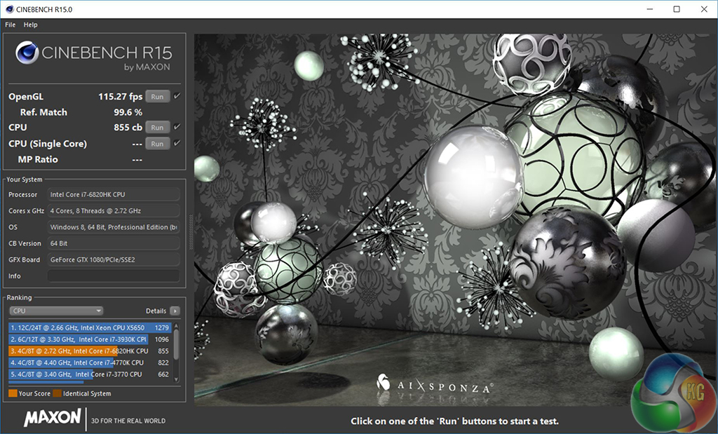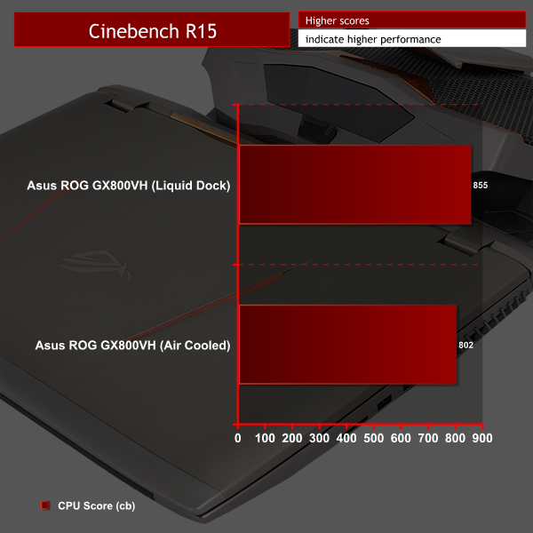 A Cinebench score as high as 855 points is similar to the performance expected from a desktop Core i7-4790K – one of the most popular gaming chips based on Intel's Haswell architecture. A desktop Skylake Core i7-6700K is only around 5-10% faster in Cinebench than the overclocked Core i7-6820HK used in GX800.