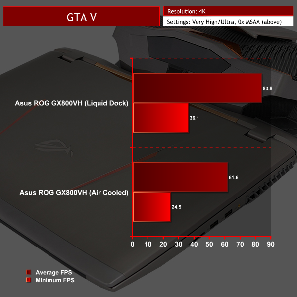 Apart from that, it is really easy to sum up the performance of GX800 as it is absolutely epic. We tested games at 4K and got similar frame rates to what we saw with the GX700 at 1080p.