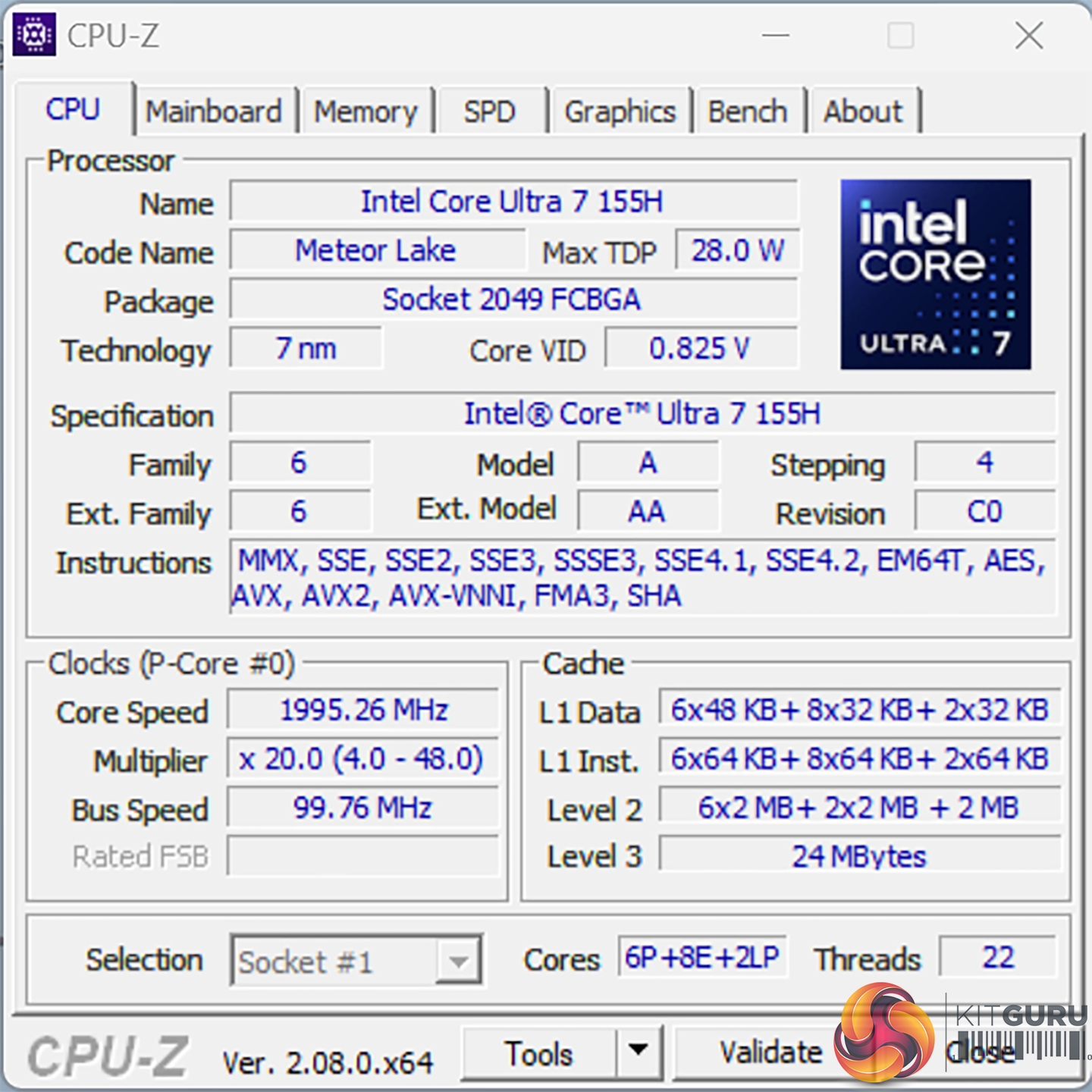 - CPU: Intel Core Ultra 7 155H (6P + 8E + 2LP cores/22 Threads) 35W TDP