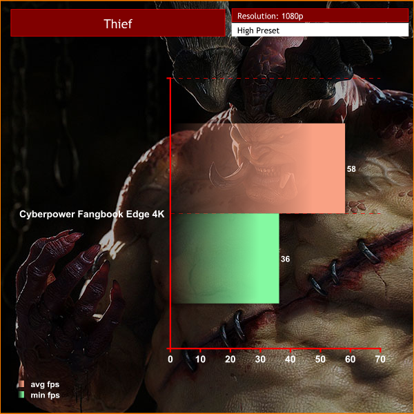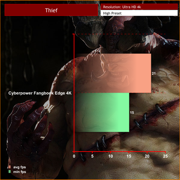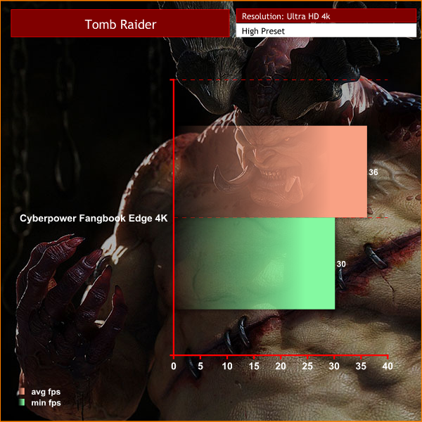 Game play at 1080p delivers the 60-120fps you would expect in modern games. Cranking up the resolution to 4K drags the frame rate down to 21fps in Thief and 36fps in Tomb Raider