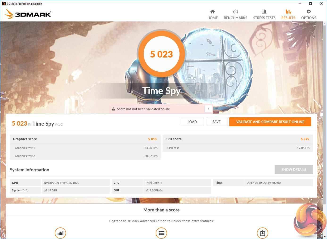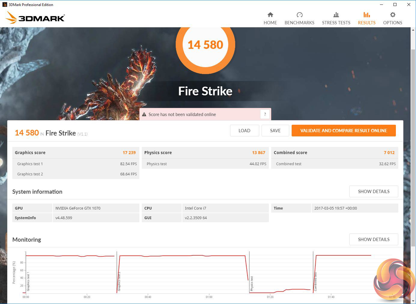 We didn’t test the two laptops at the same time with the same drivers so it would be unfair to put them on the same graph but nonetheless we can see the benefit of Kaby Lake. It is also clear the extra clock speed of the desktop CPU gives significant gains when compared to the mobile Core i7 you typically find inside a high end laptop.