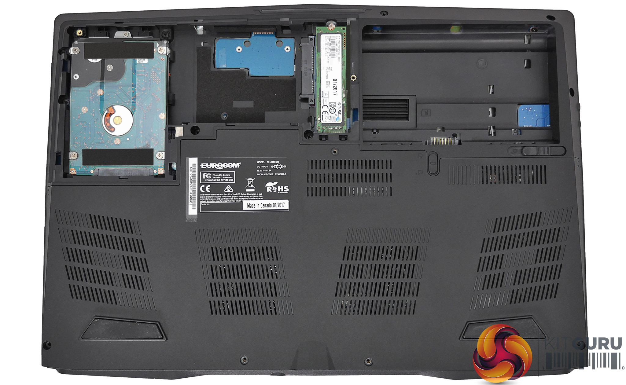 Eurocom has only filled half the slots and bays in the chassis and if you take a look at our photos you will see there is an empty 2.5-inch SATA bay, an M.2 slot and two DDR4 SODIMM slots. If you choose to buy extra drives when you specify your new laptop you will find you are offered the option of joining them together in RAID.