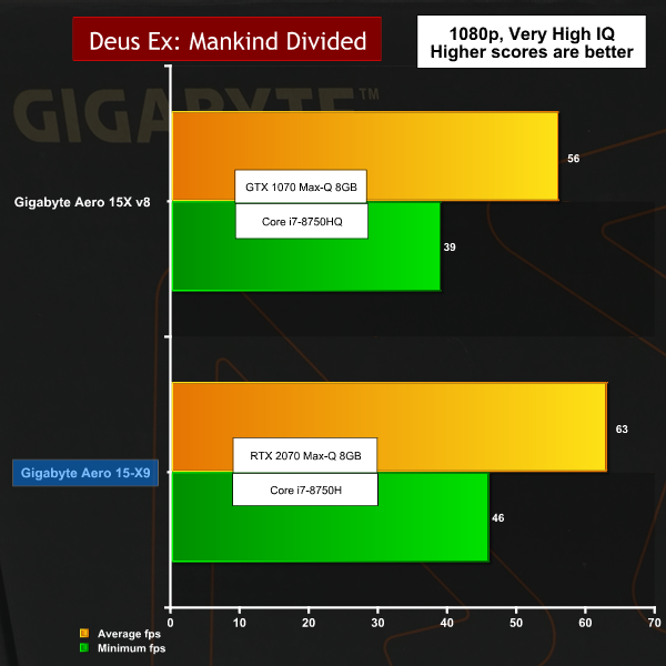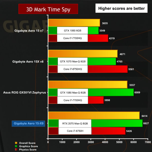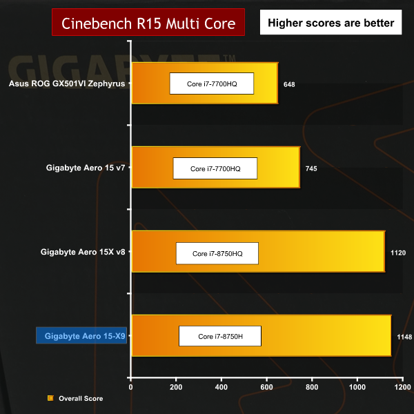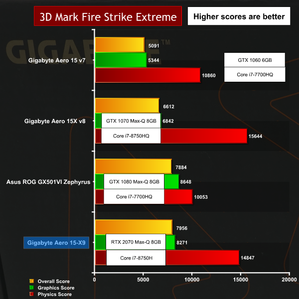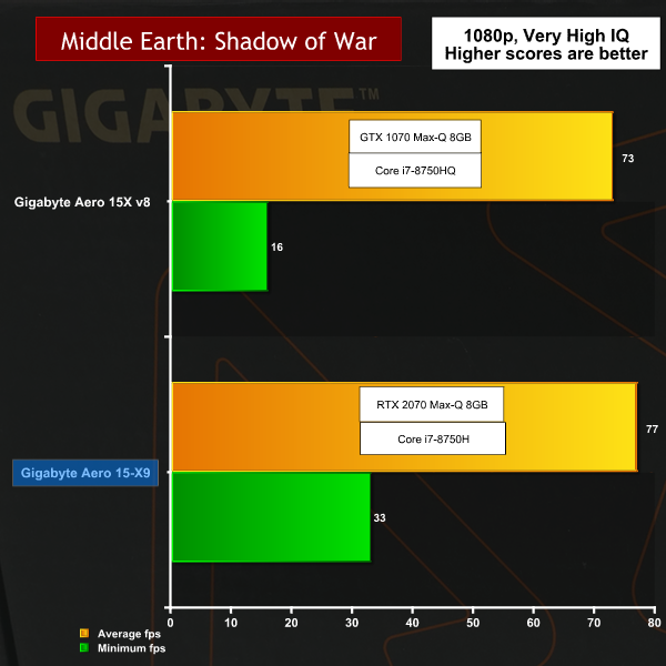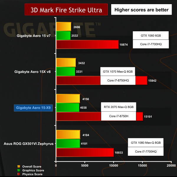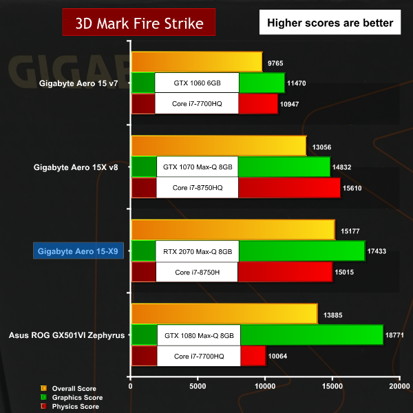 In synthetic tests such as 3D Mark it was clear the Aero 15-X9 had an advantage over the previous GTX 1070 model in the region of 20 percent. In gaming tests the scores were up and down with the new graphics typically worth ten percent extra on the frame rates. This was not consistent and some games showed a drop in frame rates which brings us back to the call for driver updates.