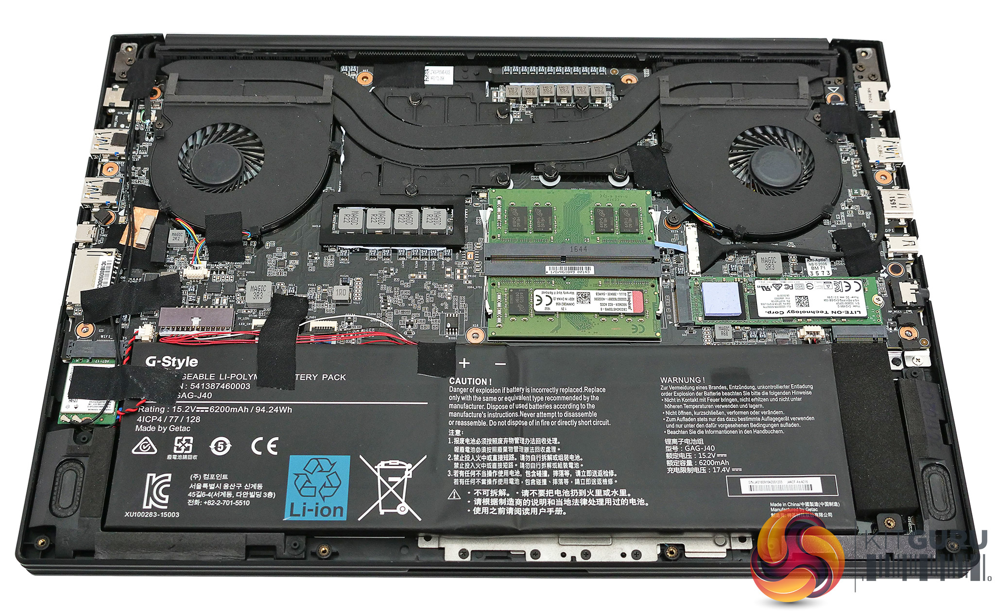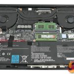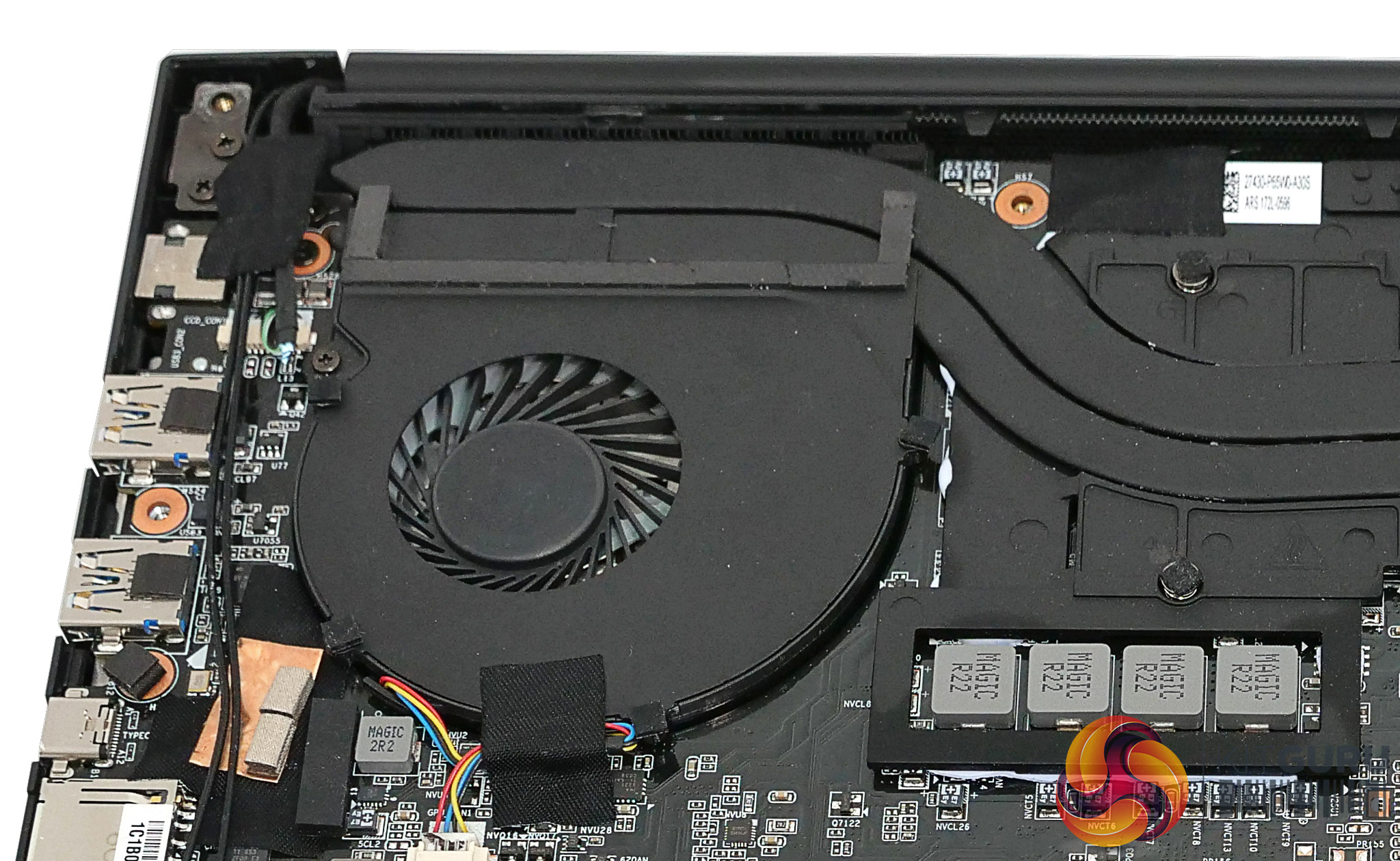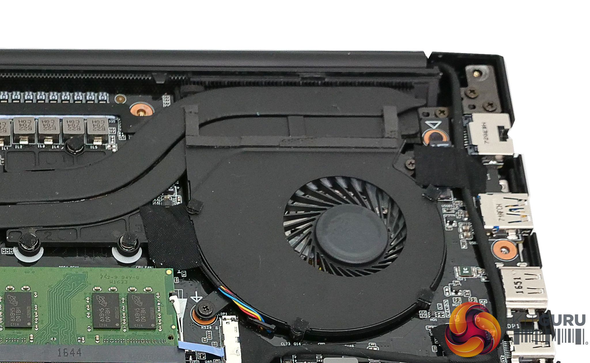 The cooling system in the Aero 15 is interesting as it draws in air from a channel in front of the screen and expels it through the ventilated bottom cover of the laptop. The heatpipes inside the laptop look quite conventional and we have no doubt the cooling system could easily manage the Core i7 and GTX 1060 chips. It seems the temperatures have been allowed to rise near the permitted limits to keep noise as low as possible.