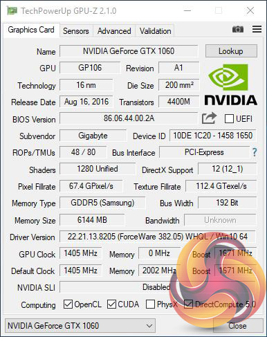 Graphics Chipset: Nvidia GeForce GTX 1060