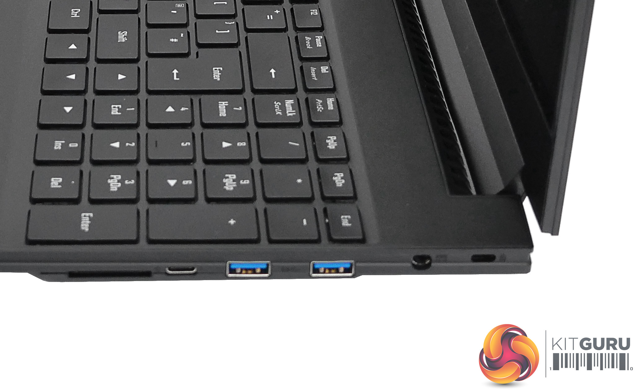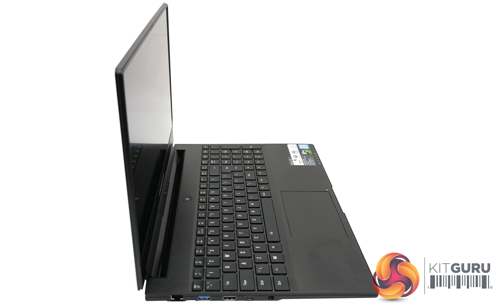 Other aspects of the styling work well, in particular the slender chassis and the tiny screen bezel which makes the Aero 15 appear considerably smaller than its true size. Honestly, our first impression was that it is the same size as the Razer Blade when it is actually larger (and slightly more heavy). It took us a while to realise the cooling system draws in air through a channel behind the keyboard and in front of the screen which is then exhausted through the bottom of the casing.