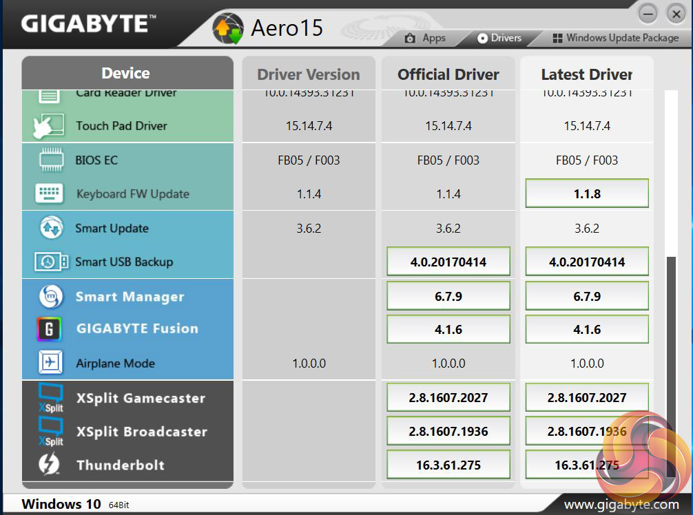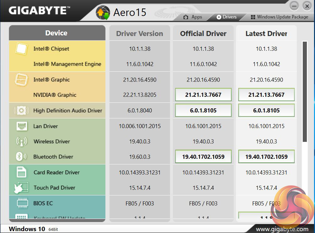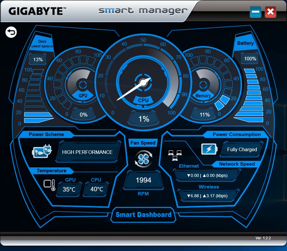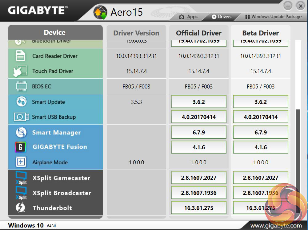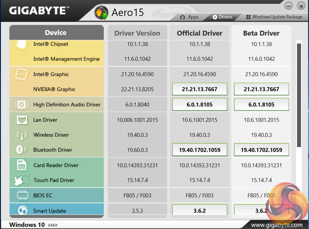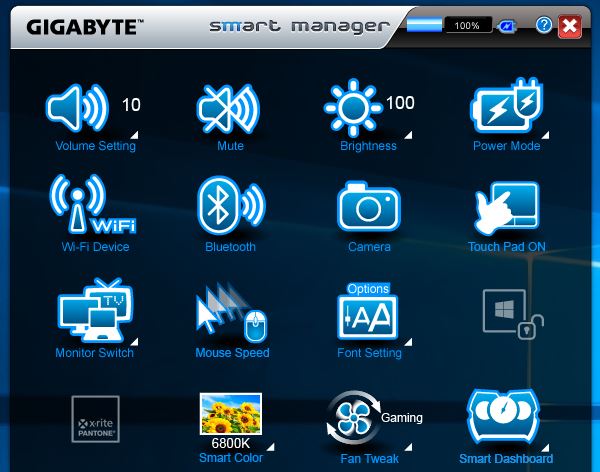 Perhaps the weakest part of the Aero 15 is the way the hardware has been garnished with various bits of Gigabyte software to add a number of functions. Gigabyte Fusion controls the RGB lighting in the keyboard, Smart Update handles updates for the BIOS, driver and utilities and Smart Manager is a series of utilities for other functions such as fan control or switching off the Wi-Fi.