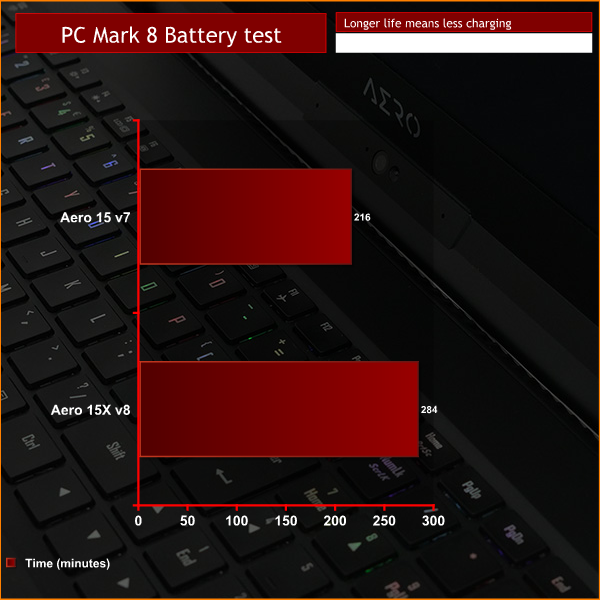 By contrast the Aero 15X v8 lasted for four hours 44 minutes in the battery test which is about nine and a half hours of real world work. That is truly impressive.