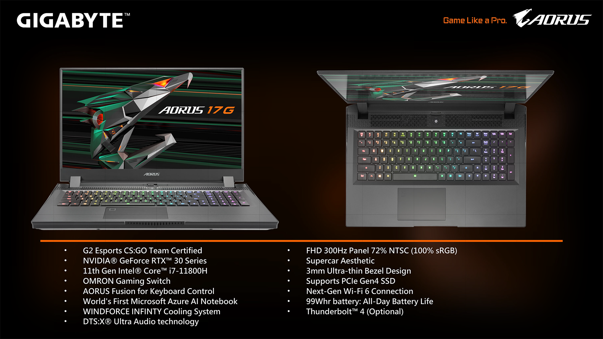 The CPU is a brand new Intel Core i7-11800H Tiger Lake that has a maximum Turbo Frequency of 4.6GHz. During our testing we saw the CPU running at 4.0-4.2GHz on all cores and 4.59GHz on a single core. We all know that a laptop is more than the sum of its parts and Gigabyte has added a number of significant features including a cooling system called WindForce Infinity, a Full HD display panel with 300Hz refresh and a mechanical keyboard that uses OMRON switches.