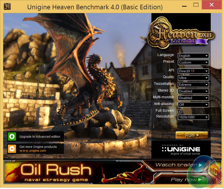 Unigine provides an interesting way to test hardware. It can be easily adapted to various projects due to its elaborated software design and flexible toolset. A lot of their customers claim that they have never seen such extremely-effective code, which is so easy to understand. We tested at 1920×1080 with the following settings.
