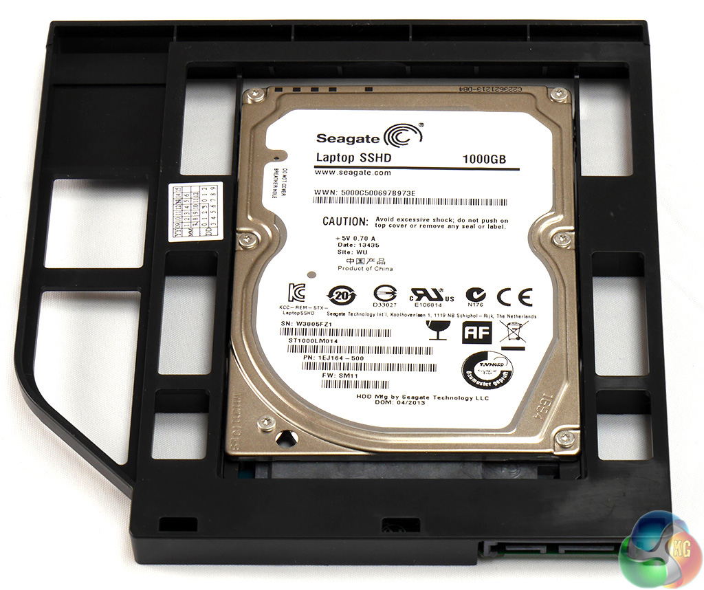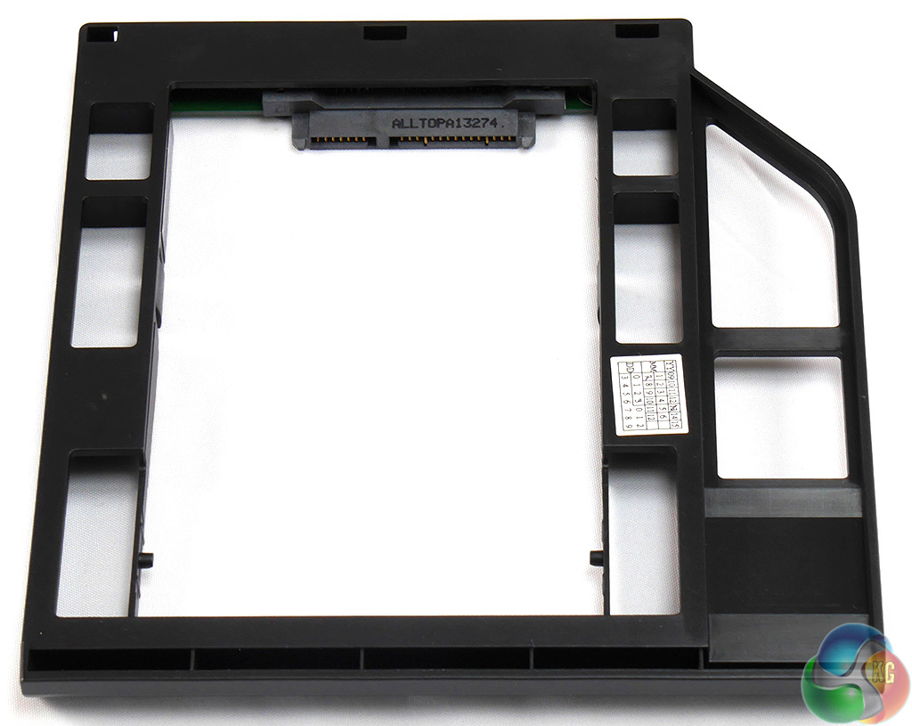 The optical drive can be removed from the chassis after you release a catch and then replaced with a hard drive that sits in a drive bay adapter that is supplied with the P35K.