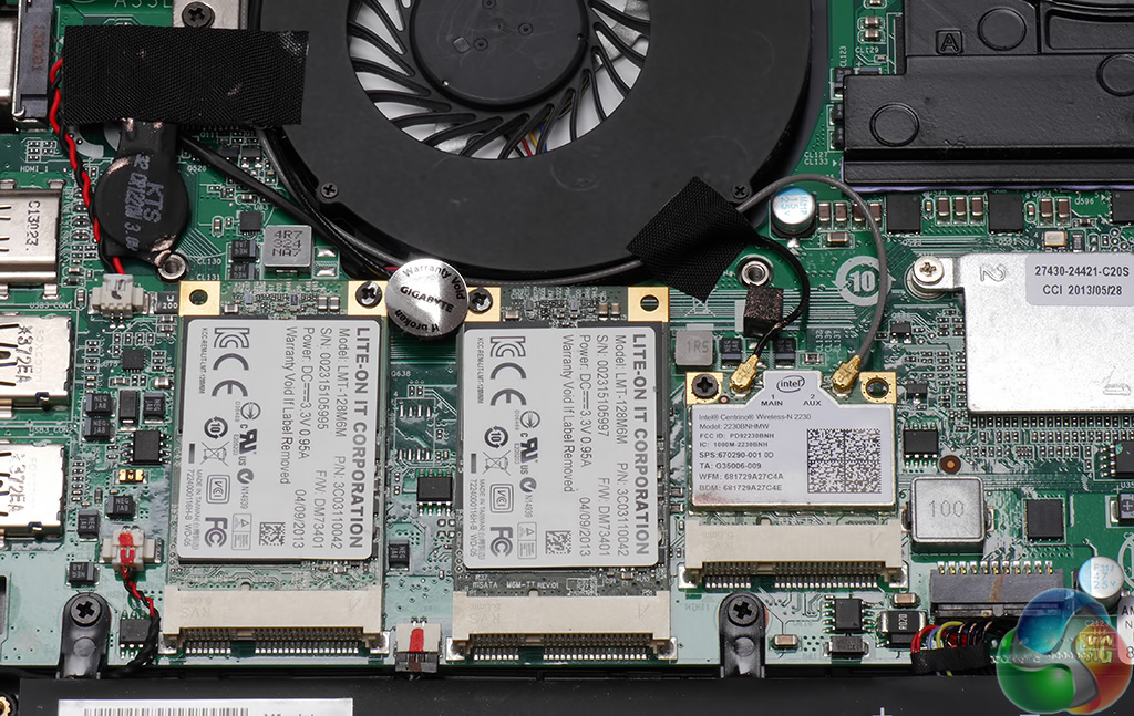 The two Lite-On mSATA SSDs that form the RAID array are located behind the battery and take up a vanishingly small amount of space.