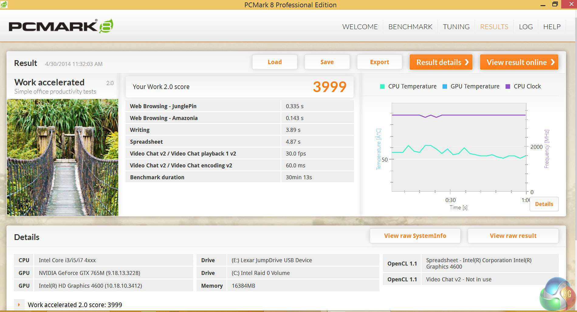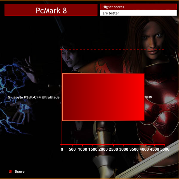 PC Mark 8 shows that the Gigabyte P35K is an impressively fast laptop. In the PCMark8 test the P35K scored 3,999 points which is a good indication of all round performance.