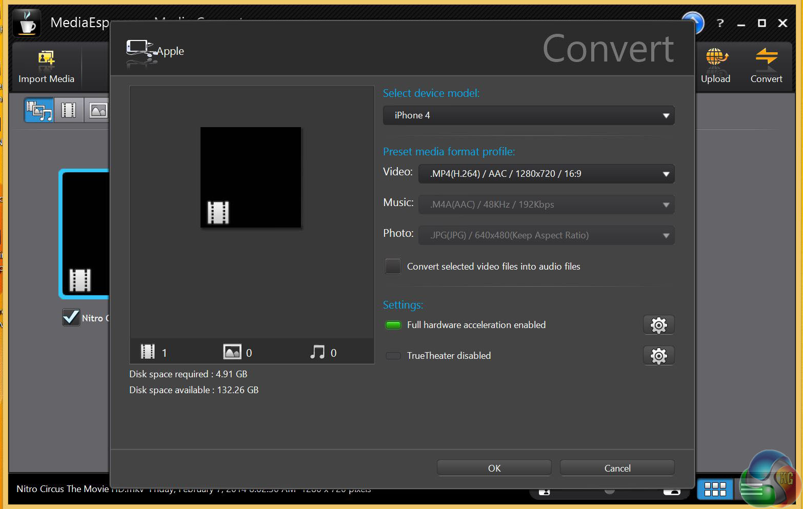 After the test was completed using MediaEspresso 6.5 I updated to MediaEspresso 6.7 and found the performance was unchanged, except for one notable difference. For some reason the new version has a default setting where hardware acceleration is disabled so just for larks I gave it a whirl.