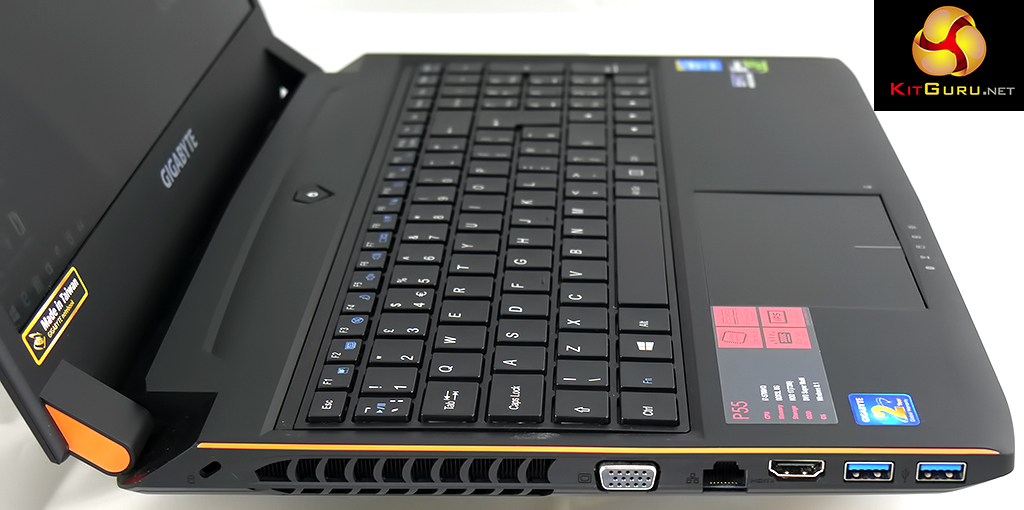 It is less obvious why Gigabyte has specified Intel Wireless-N Wi-Fi as that can surely save very little money compared to 802.11/ac, and the retro theme continues with the inclusion of a DVD Supermulti drive. The P55W makes no claim to be a thin and light laptop and instead sits squarely in the middle ground at 2.5kg and a thickness of 34mm at the thickest point.