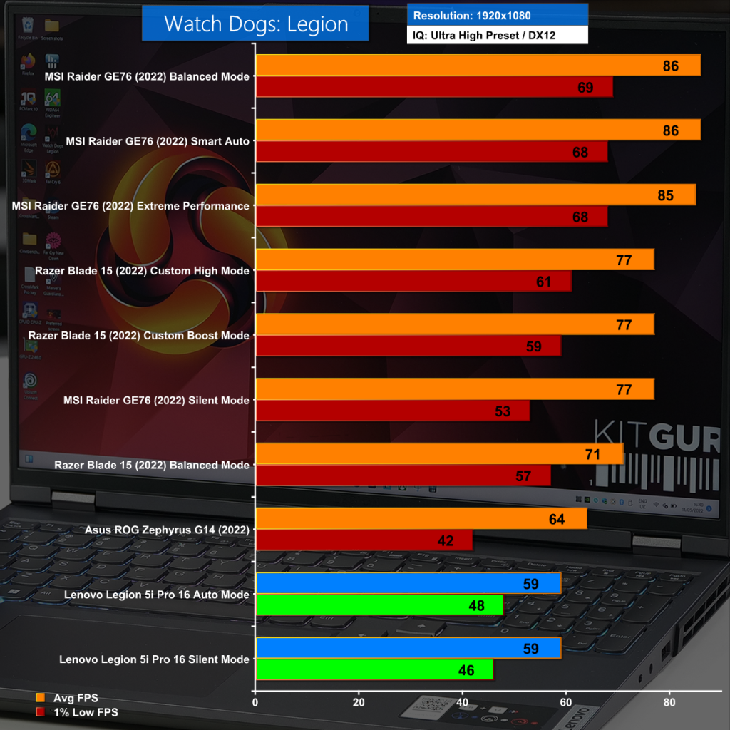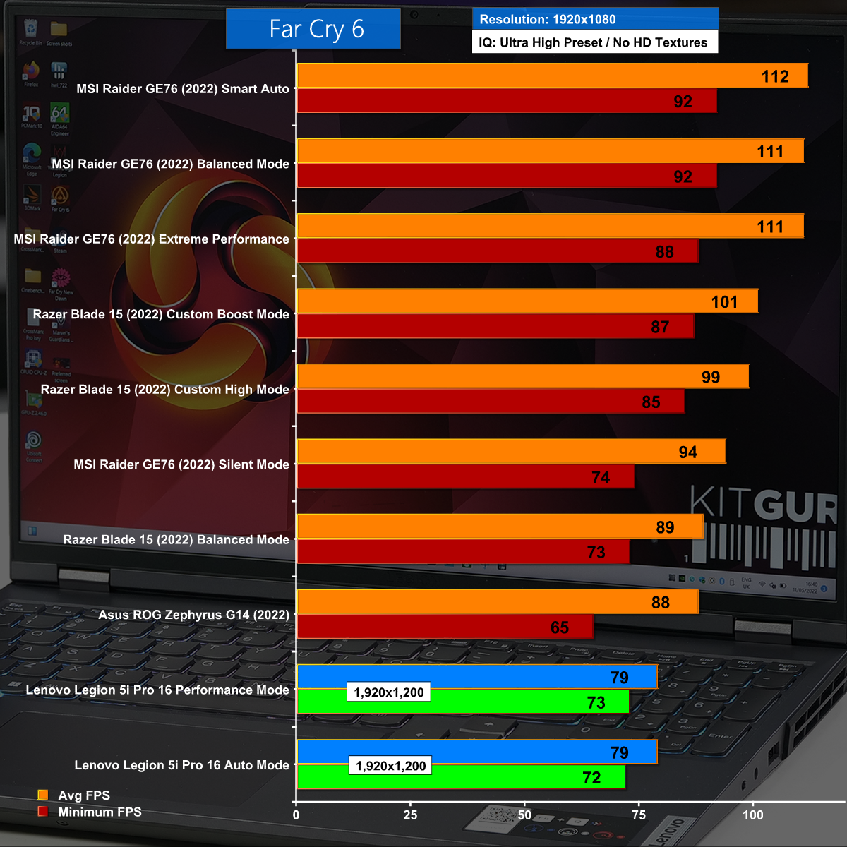 It's the same story about testing resolution in Far Cry 6 and once again the Lenovo Legion struggles slightly however the frame rates are fine and we had no problem playing this demanding game.
