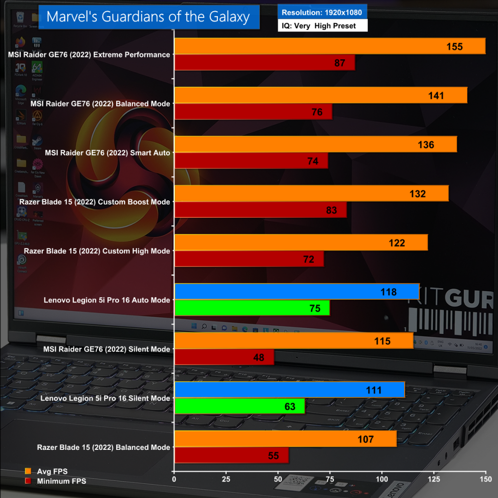 We found that Marvel's Guardians of the Galaxy rocked along happily at 1080p on the Lenovo Legion and chalked up another success for this mid-priced laptop.