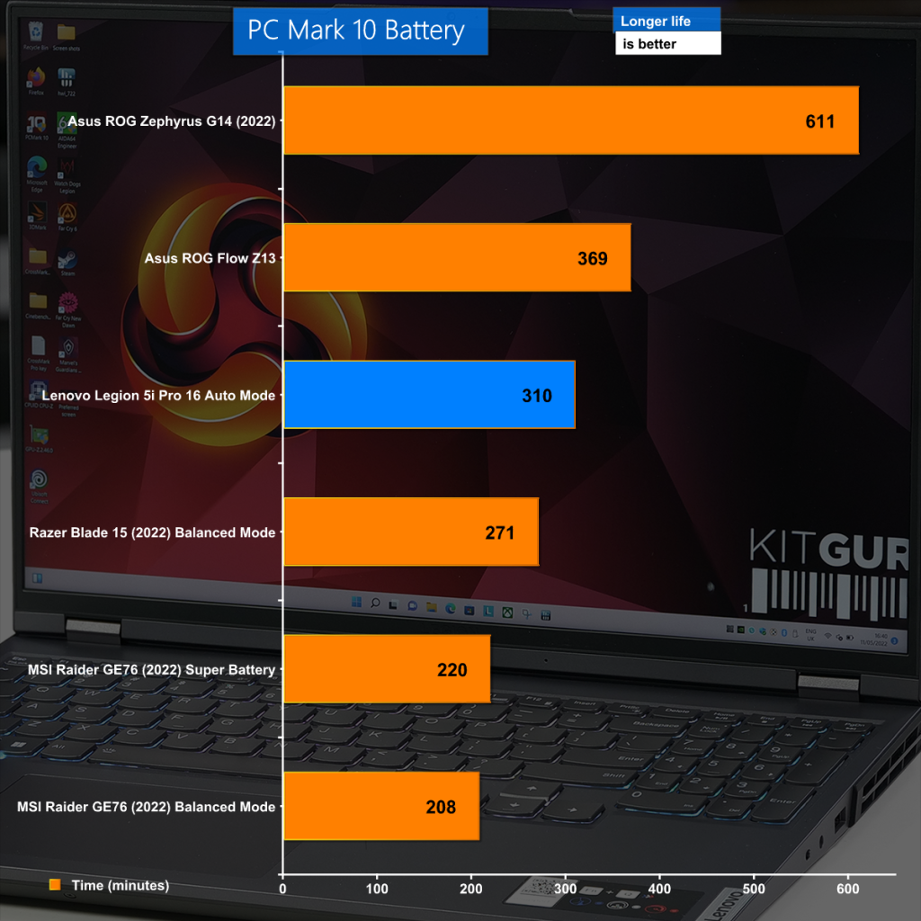 The battery is not especially large yet it offers more than five hours continuous use in PC Mark 10. That is very encouraging and means you should be able to leave the weighty power adapter at home and travel light.