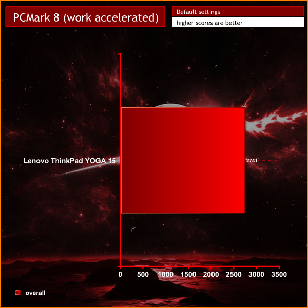 The first battery run with the YOGA 15 appeared to be heading for 12 hours, however the expected life rapidly dropped and delivered just over three hours. After this first conditioning run the life leveled out at seven hours of continuous PC Mark 8 looping, which equates to 14 hours in the real world. That's impressive and effectively means the YOGA 15 will last all day on battery.