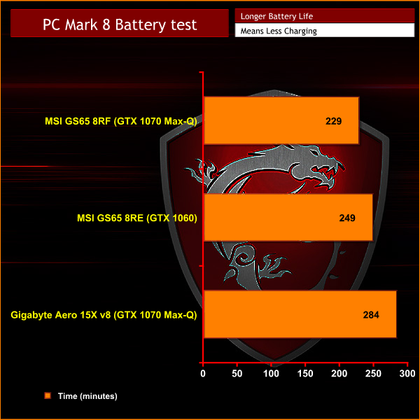 The 80.25Wh battery lasts just over four hours in a continuous loop of PC Mark 8 which equates to eight hours of real world usage. That is pretty impressive and while we have seen better battery life from especially good laptops we really cannot complain about those figures.