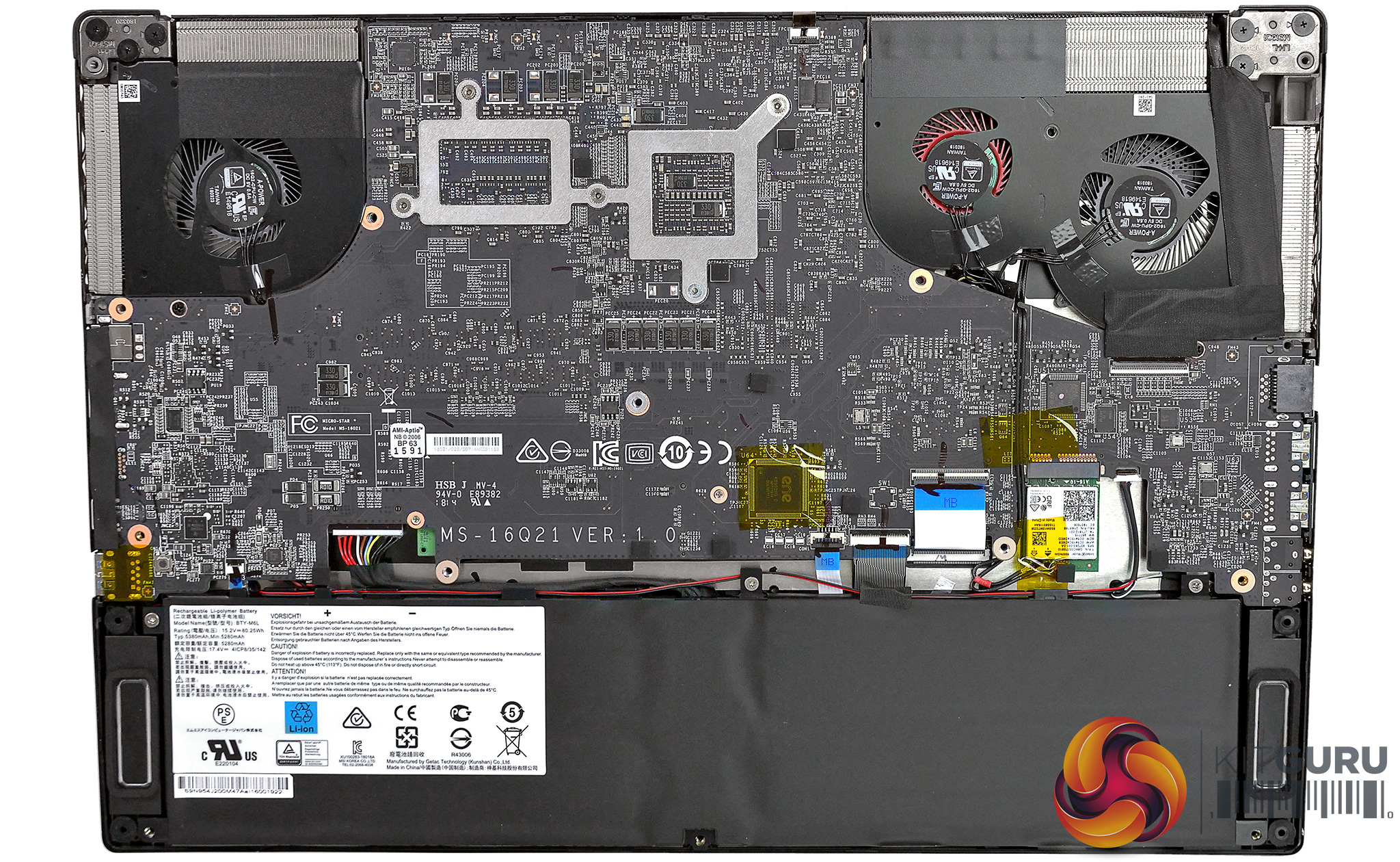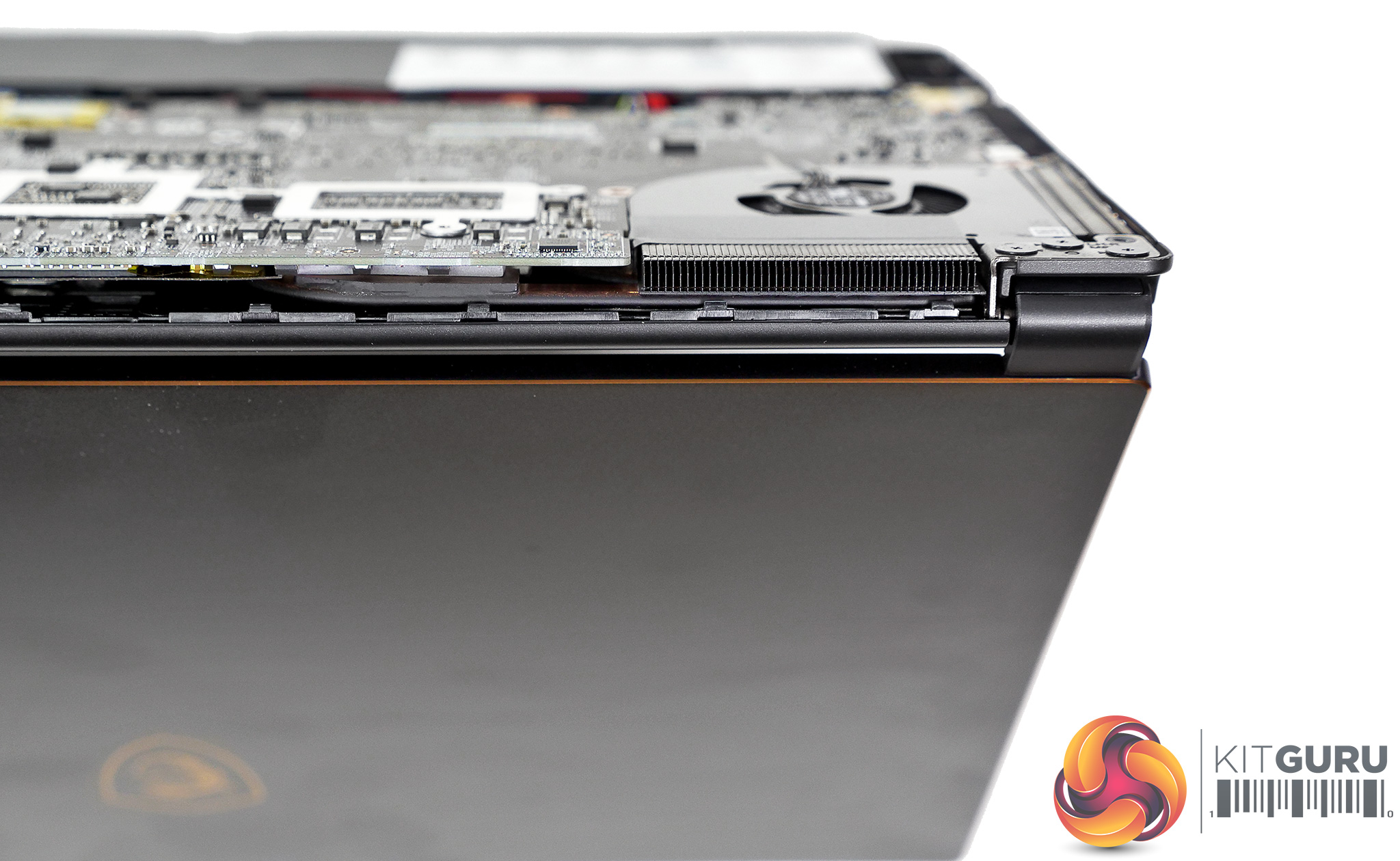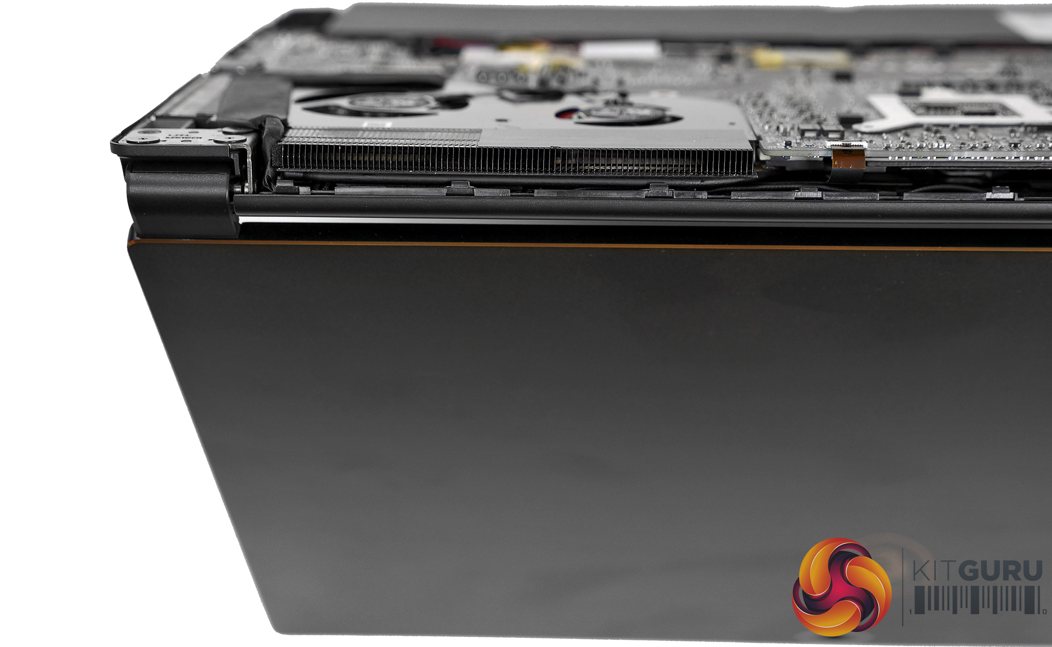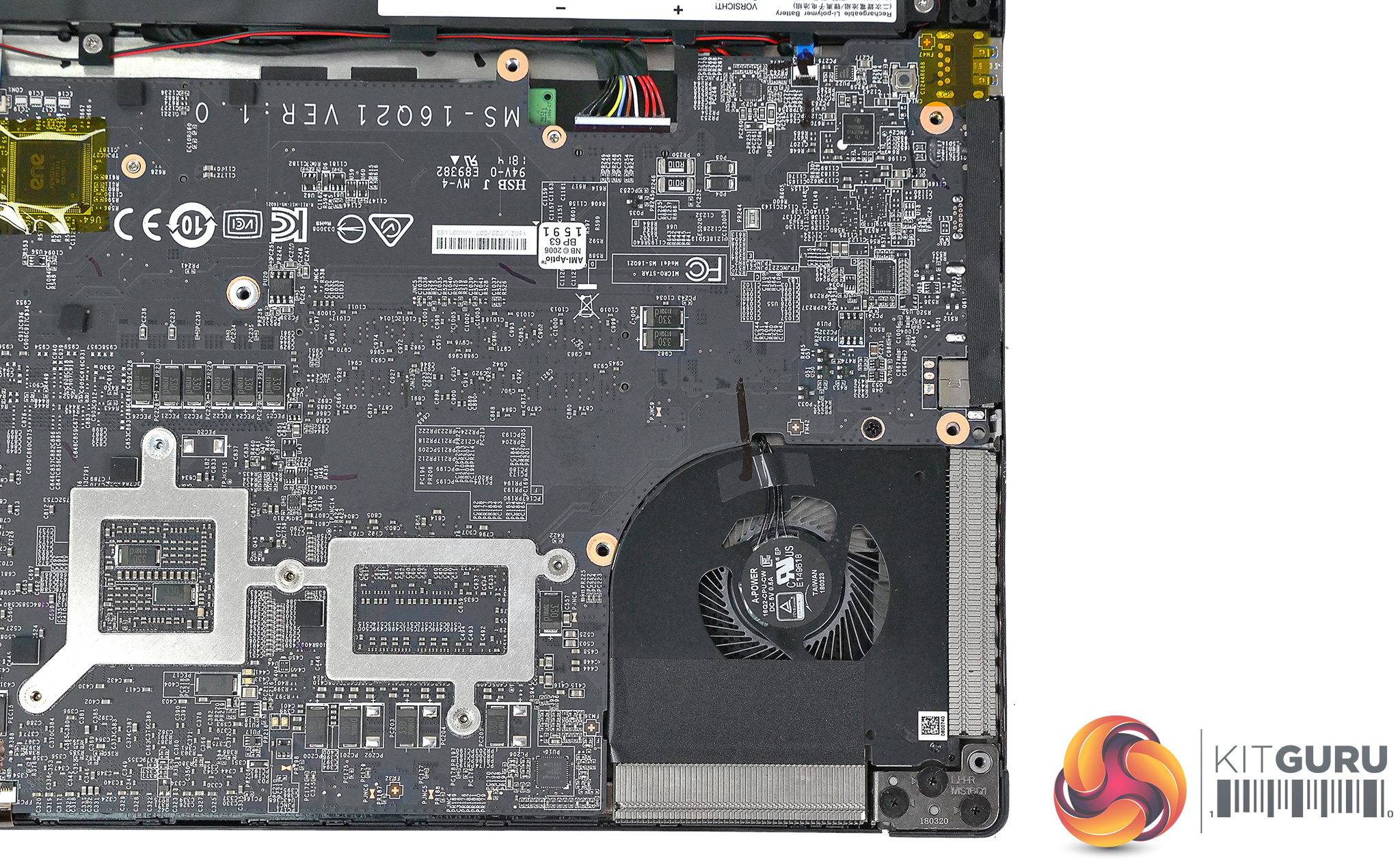 It is clear that MSI has chosen to run the fans in this laptop at speeds that keep the noise levels down, as opposed to Gigabyte Aero 15X which is relatively noisy. We are unclear whether the flipped motherboard design hurts internal temperatures, however our testing demonstrated that air flow on one side of the cooling system is doing something peculiar. On the left side of the laptop not much seems to happen while on the right side the fan is going like the clappers. You can clearly see in our video how exhaust airflow is operating and that it is highly asymmetric.