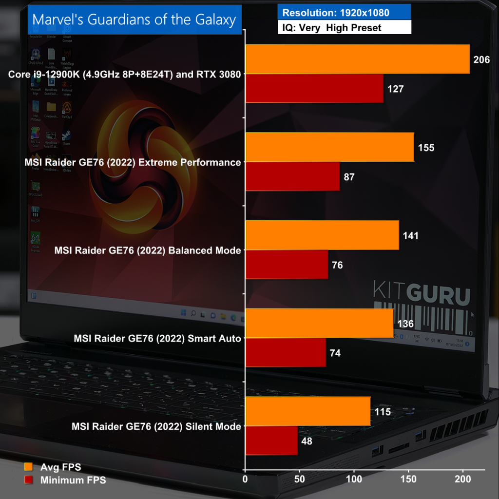 Marvel's Guardians of the Galaxy makes the most of the available resources with notable steps between each of the MSI Center operating modes.