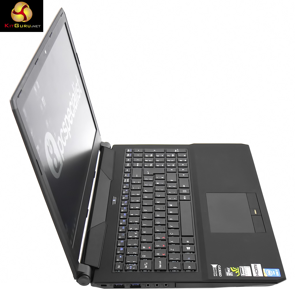 The Clevo chassis is wrapped in a matt black rubberised covering that feels good yet doesn't attract oily fingerprints like certain laptops we have seen in the past. Continuing the good news the keyboard feels good, the touchpad works effectively and there is a fingerprint reader between the mouse buttons.