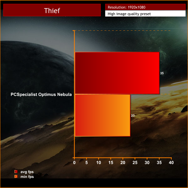 Firing up the Optimus Nebula is a very pleasing experience. It is fast and responsive and while it cannot match some of the power houses we have seen with SSD RAID it is certainly quite lively. PC Specialist has installed very little software (we saw a trial version of Bullguard) so there is no bloat to slow Windows and the combination of SSD, Core i7 and GTX 960M hardware drives the laptop along at a brisk pace.