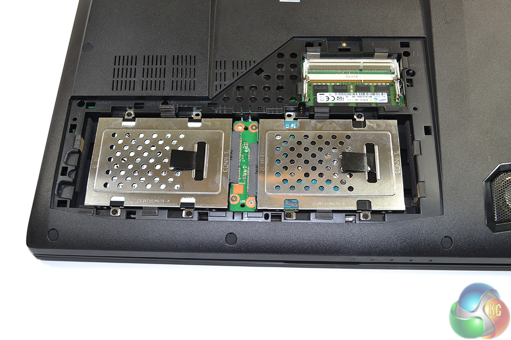 24GB (3x8GB in dual-channel, oddly enough) of 1600MHz Samsung DDR3L combines with a 256GB SanDisk X110 SSD and a Hitachi Travelstar 5K1500 1.5TB 5400RPM HDD. That 5400RPM HDD is primarily useful for storage and may give poor game load times due to its low rotational speed.
