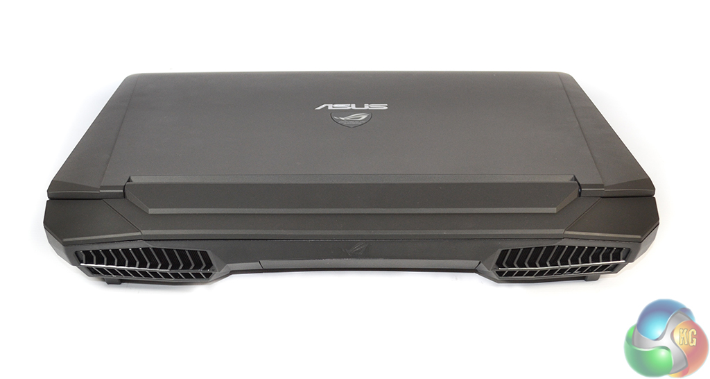 The Asus G750JZ uses angled lines on either side of the main body to create a stylish view from the rear.